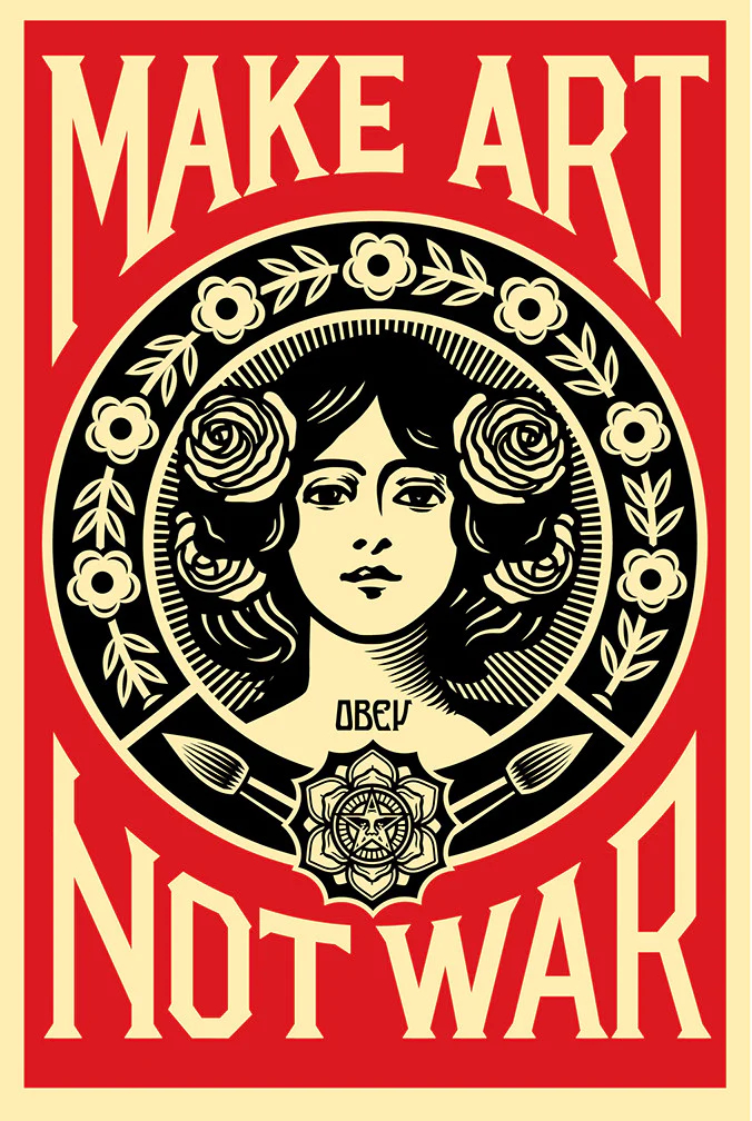 Shepard Fairey (Obey), Make Art Not War, 36 x 24 inches, Offset lithograph on cream Speckle Tone paper.